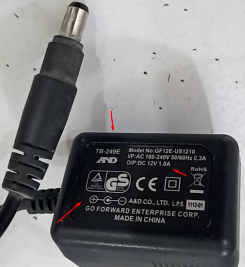 Căn cứ vào thông số chi tiết của sản phẩm Adapter A&D AX-TB-249E 12V 1A đi theo thiết bị