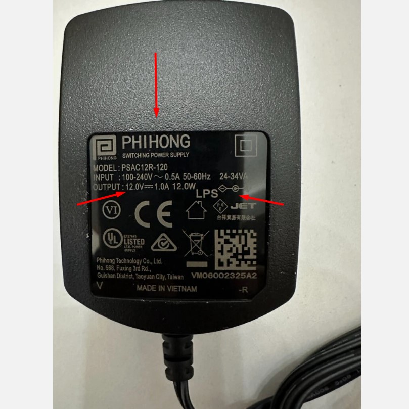 Căn cứ vào thông số chi tiết của sản phẩm Adapter PHIHONG PSAC12R-120 12V 1A 12W