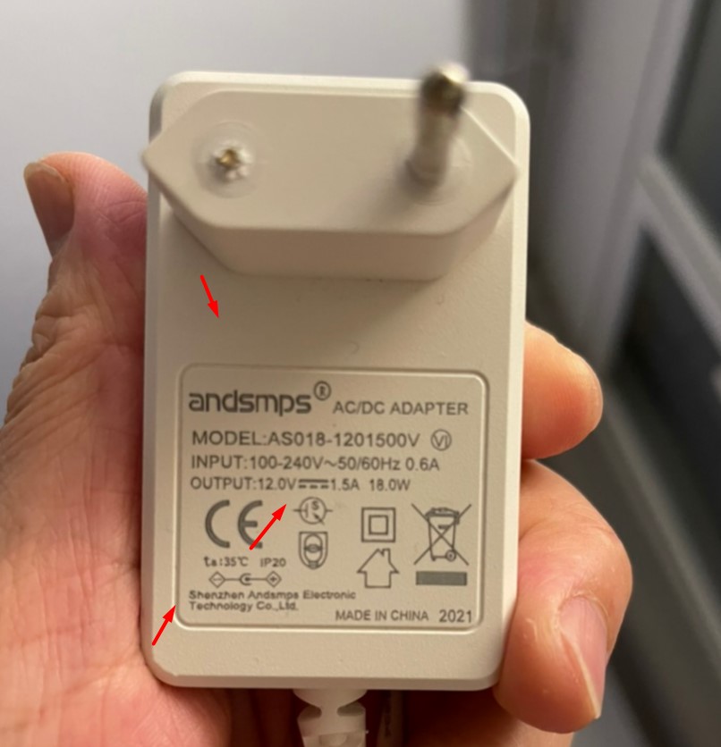 Adapter 12V 1.5A 18W OEM Andsmps AS018-1201500V Connector Size 4.0mm x 1.7mm For Đèn Kiêm Sạc Và Loa Bluetooth WILIT A15B LED Bedside Light with Qi Wireless Charger and Bluetooth Speaker