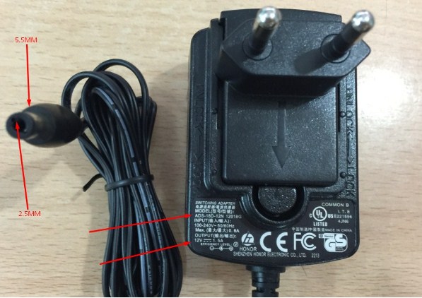 Nguồn điện cấp cho thiết bị: DC Connector Size 5.5mm x 2.5mm