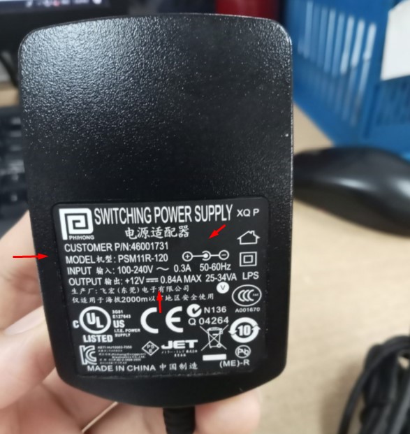 Sản phẩm thay thế Adapter 12V 1.67A PHIHONG Connector Size 5.5mm x 2.5mm dùng cho METTLER Toledo ML802E /03 Balance 820g