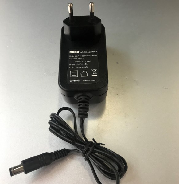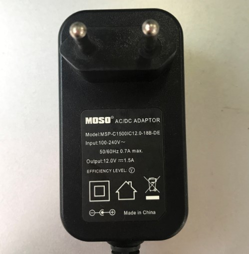 Adapter 12V 1.5A MOSO MSP-C1500IC12.0-18B-DE Connector Size 6.5mm x 3.0mm