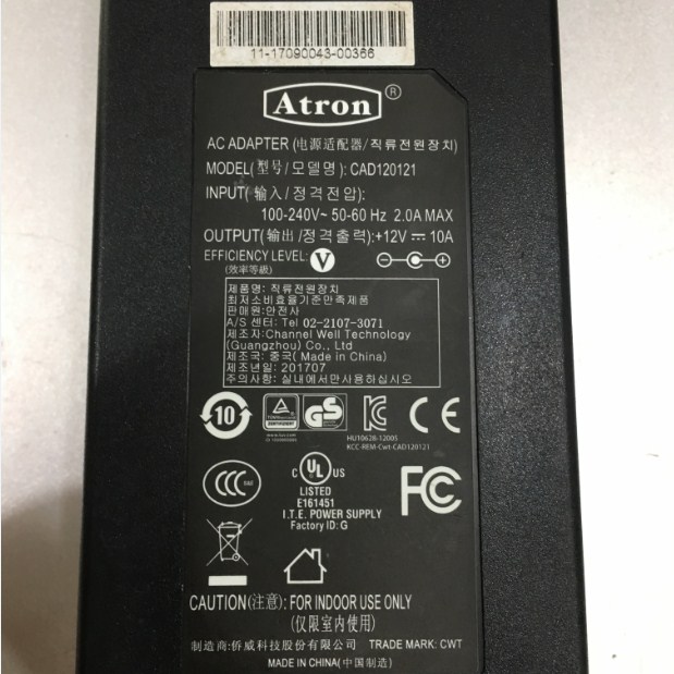 Adapter 12V 10A 120W ATRON CHANNEL WELL TECHNOLOGY For LCD TFT Monitors TVs DVDTVs PicoPSU and Other Equipment Connector Size 5.5mm x 2.5mm