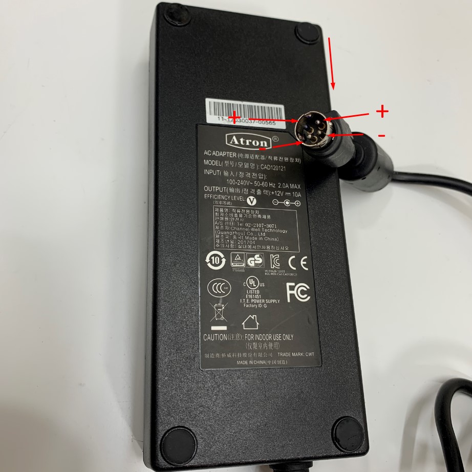 Adapter 12V 10A 120W ATRON Connector Size 4 Pin 10mm Mini Din OEM Synology EA11011D-120 For Synology DiskStation Network Attached Storage NAS Server, DS918+ DS918