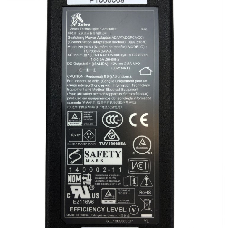 Cắn cứ vào sạc zin đi theo thiết bị Zebra FSP030-RCAM-A AC Power Adapter 12V 2.5A 30W