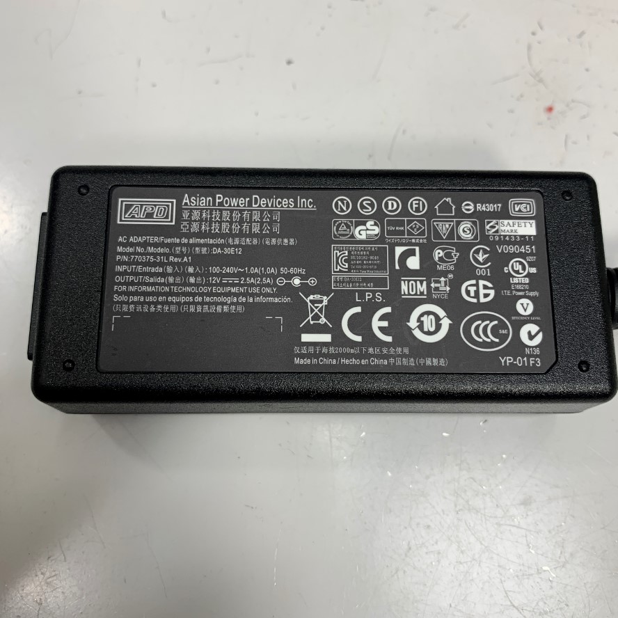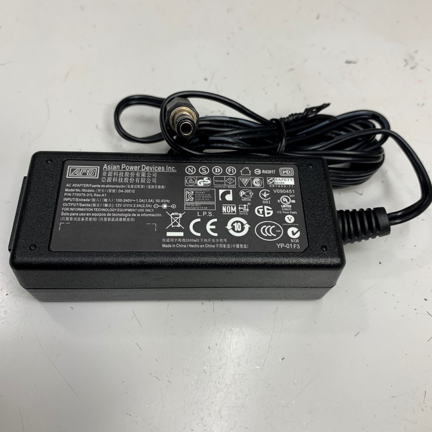 Adapter 12V 2.5A 30W APD OEM Zebra FSP030-RCAM-A 12V 2.5A Connector Tip Size 5.5mm x 2.5mm