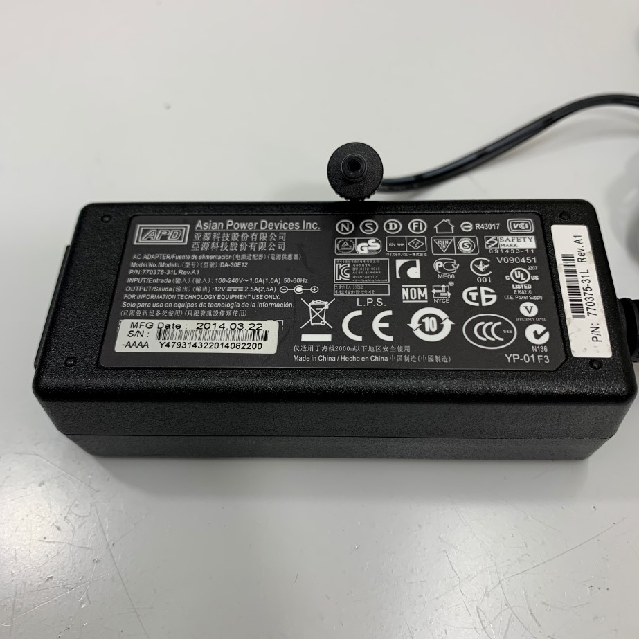 Adapter 12V 2.5A 30W Asian Power Devices APD DA-30E12 Connector Size 3.5mm x 1.35mm