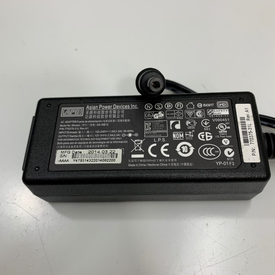 Adapter 12V 2.5A 30W Asian Power Devices APD DA-30E12 Connector Size 4.8mm x 1.7mm