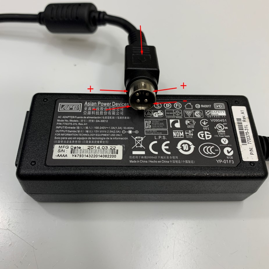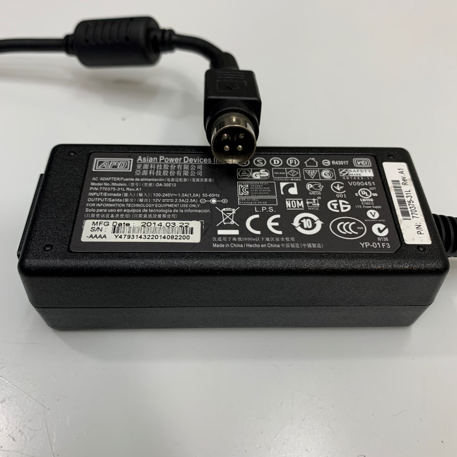 Adapter 12V 2.5A 30W Asian Power Devices APD DA-30E12 Connector Size 4 Pin Mini Din 10mm