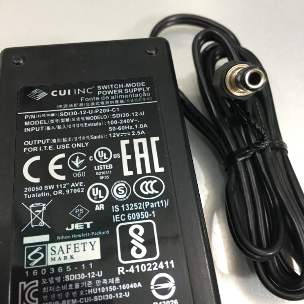 Adapter 12V 2.5A 30W CUI INC SDI30-12-U-P209-C1 Connector Size 5.5mm x 2.5mm