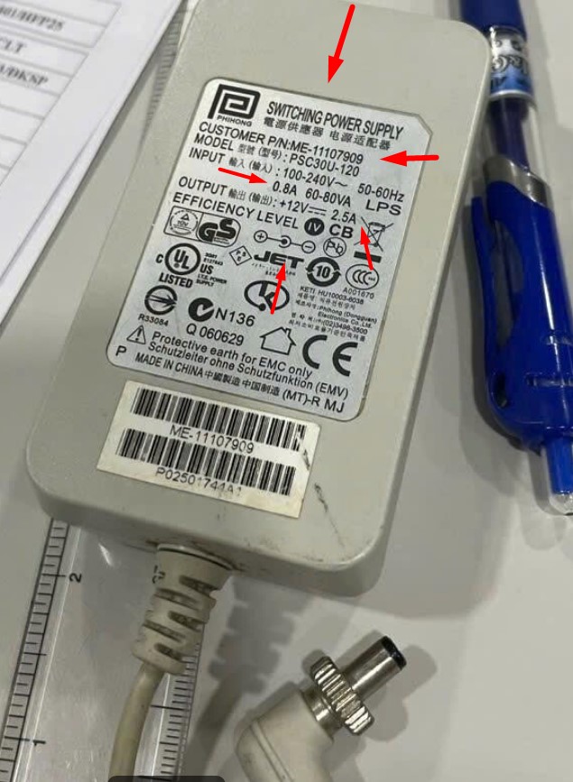 Phihong ME-11107909 12V 2.5A Adaptor Power Supply