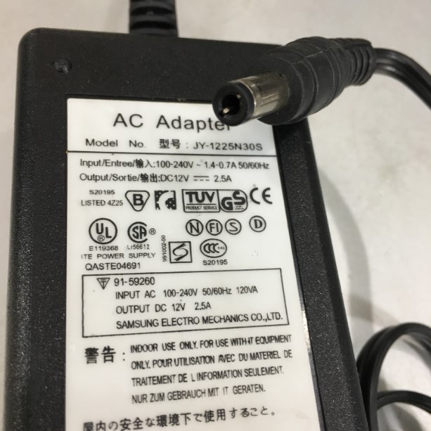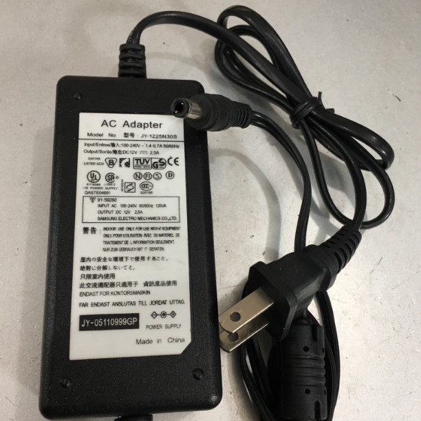 Adapter 12V 2.5A 30W JY-1225N30S Connector Size 5.5mm x 2.5mm