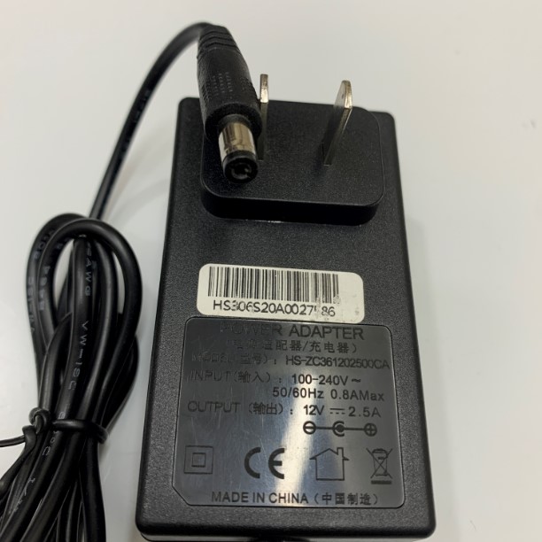 Adapter 12V 2.5A HS-ZC361202500CA Connector Size 5.5mm x 2.1mm