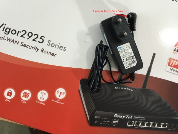 Nguồn điện cấp cho thiết bị: DC Connector Size 5.5mm x 2.5mm