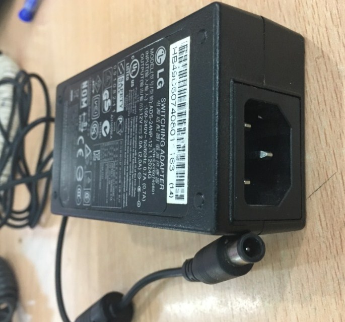 Adapter 12V 2A 24W LG ADS-24NP-12-1 For Monitor LCD LG W1943S Connector Size 6.5mm x 4.4mm