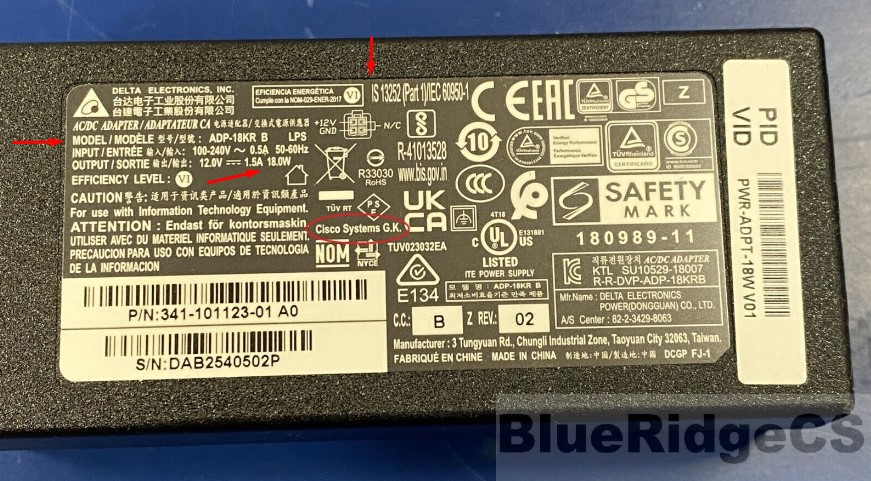 Căn cứ vào Adapter Cisco Catalyst C1000 PWR-ADPT-18W External Power Supply 341-101123-01 A0 đi theo thiết bị