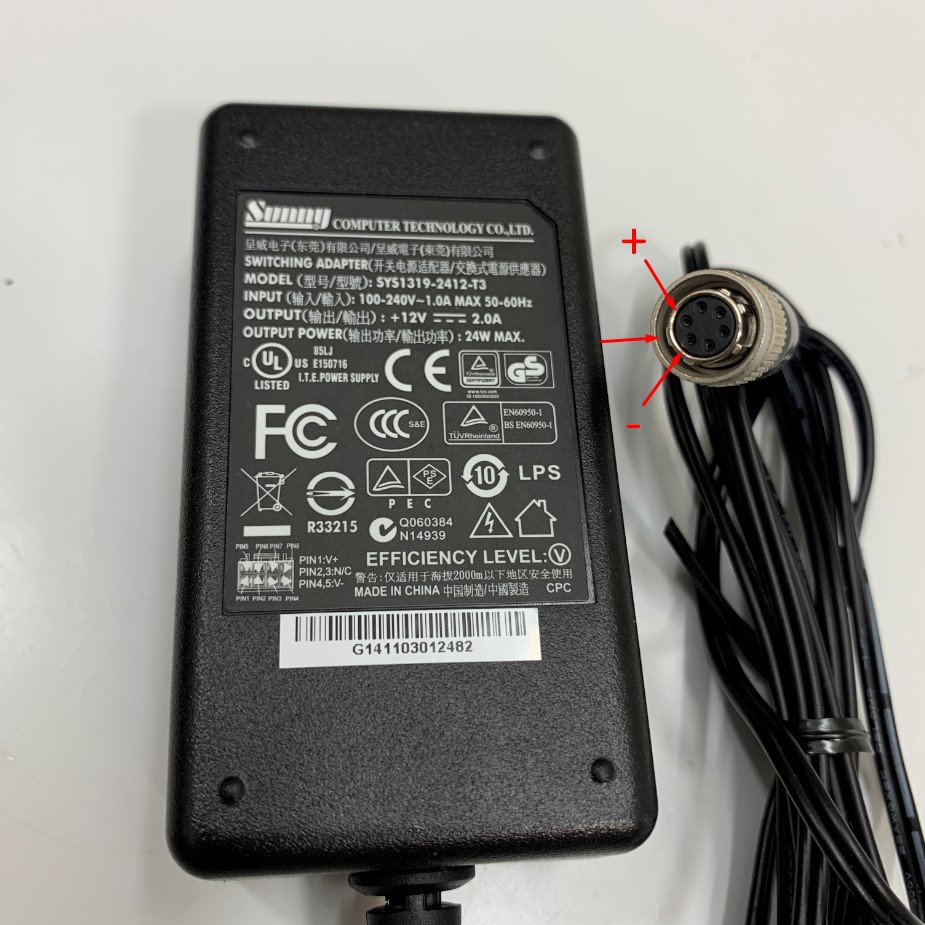 Adapter 12V 2A 24W SUNNY Connector Size Hirose HR10A-7P-6S73 6 Pin Female For FLIR Blackfly BFLY-PGE-12A2M-CS Camera