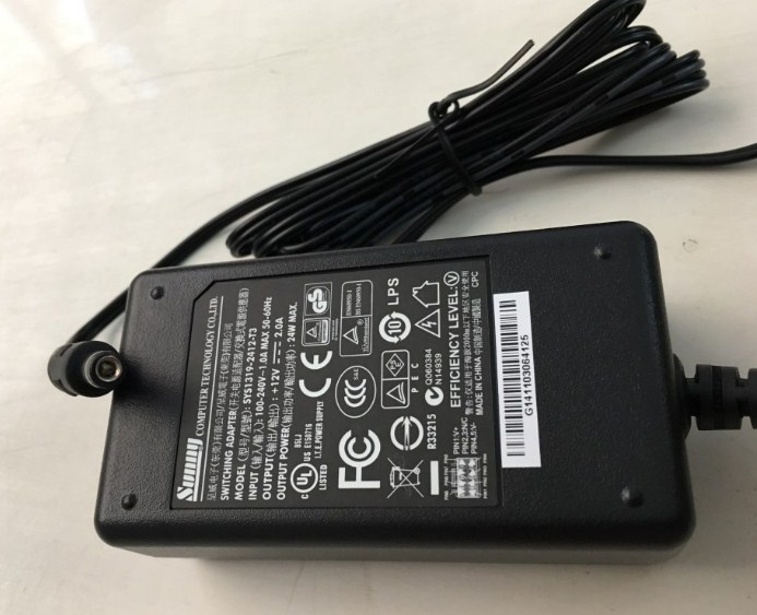 Adapter 12V 2A 24W SUNNY SYS1319-2412-T3 Connector Size 5.5mm x 2.1mm
