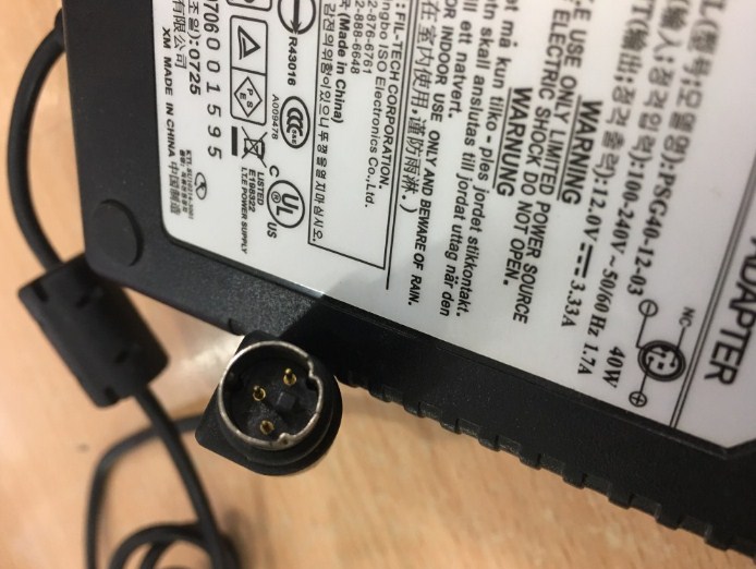 Adapter 12V 3.33A 40W SOLVE PSG40-12-03 Connector 3Pin Mini Din 10mm