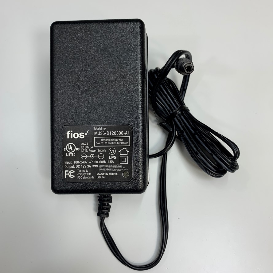 Adapter 12V 3A 36W FiOS MU36-D120300-A1 US Plug Connector Tip Size 5.5mm x 2.5mm