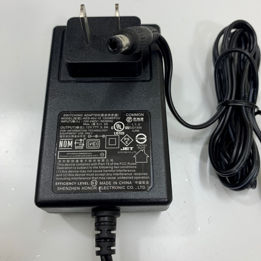 Adapter 12V 3A 36W SHENZHEN ADS-40J-12 12036EPCU US Plug Power Cord DC Connector Size 5.5mm x 2.5mm