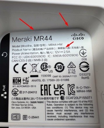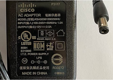 Căn cứ vào Power Supply trên Cisco Meraki MR44-HW Router Datasheet MA-PWR-30W-US DC 12V 2.5A