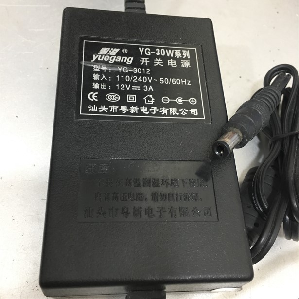 Adapter 12V 3A YUEGANG YG-30W Connector Size 5.5mm x 2.5mm