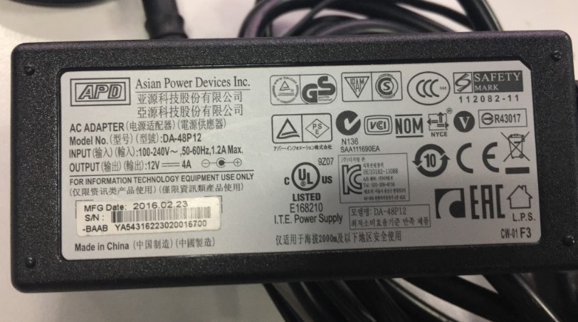 Adapter 12V 4A 48W APD DA-48P12 Connector Size 5.0mm x 3.0mm For Video Conferencing System Camera Hội Nghị Truyền Hình AVer EVC900/EVC950