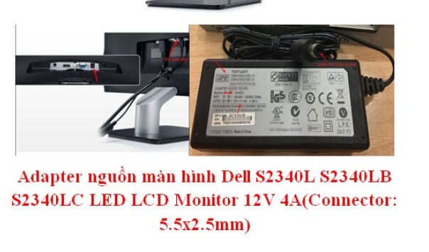 Adapter 12V 4A 48W APD DA-48T12 Nguồn Màn Hình Dell S2340L S2340LB S2340LC LED LCD Monitor Connector Size 5.5mm x 2.5mm