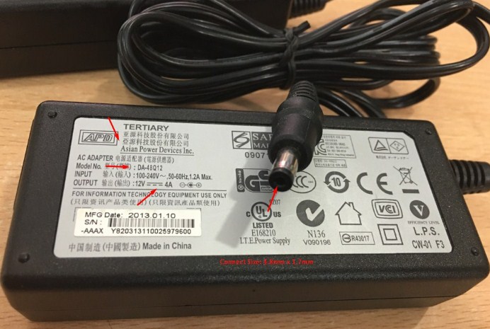 Adapter Original Asian Power Devices Inc DA-48Q12 12V 4A Connect Size: 4.8mm x 1.7mm
