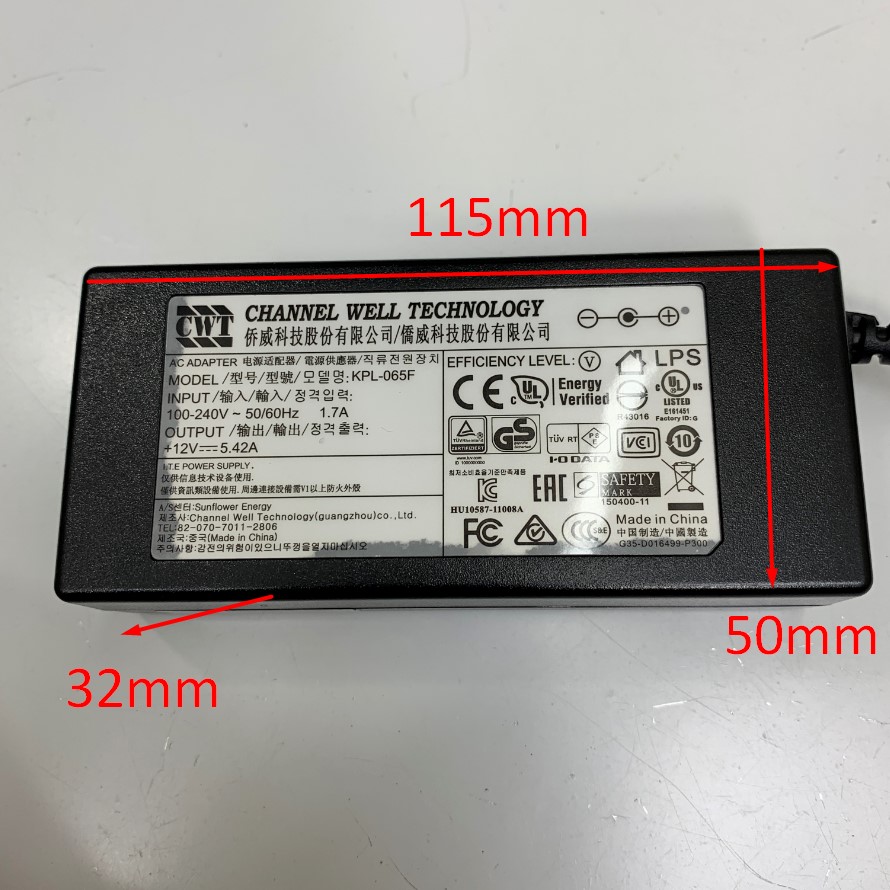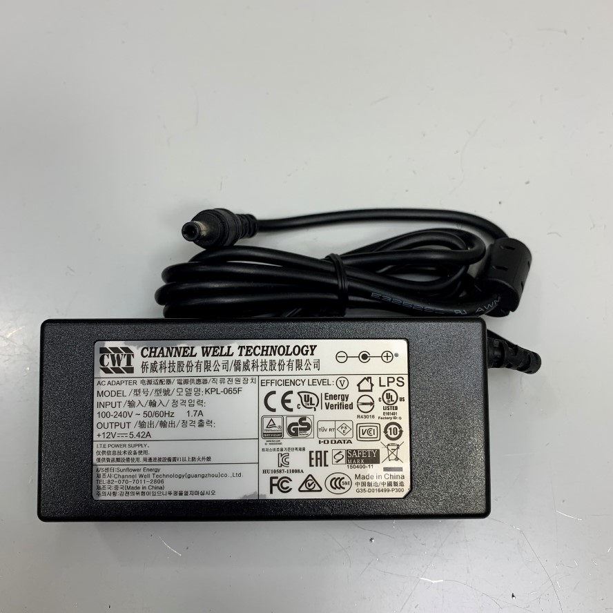 Adapter 12V 5.42A 65W Channel Well CWT KPL-065F Connector Size 5.5mm x 2.5mm For Cisco Router, Agilent Technologies G6860A Cary 60 UV-Vis