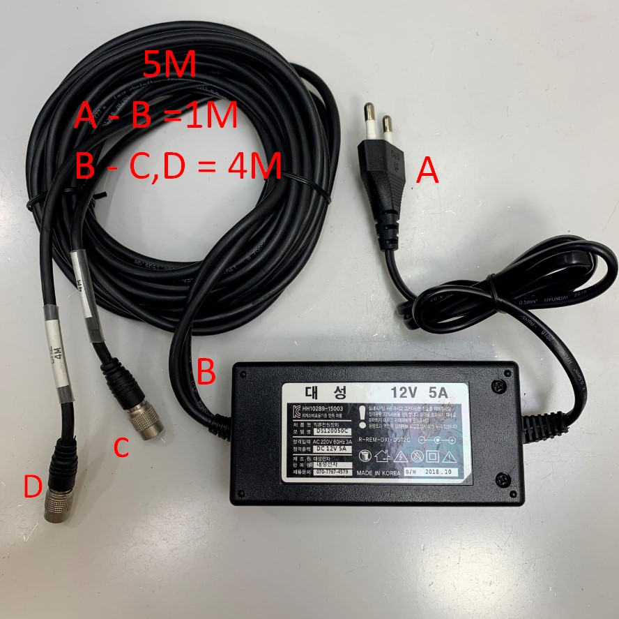 Adapter 12V 5A 60W DS120050C Connector Size Dual Port 2 Connector Hirose HR10A-7P-6S(73) 6 Pin Female Y Splitter Dài 5M 17ft Cable igus chainflex E310776 For Camera Industrial Power