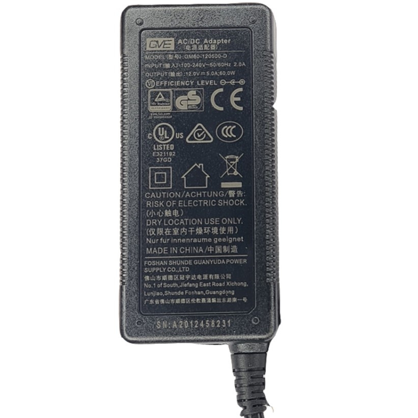 Adapter 12V 5A 60W GVE GM600-120500 Connector Size 5.5mm x 2.5mm