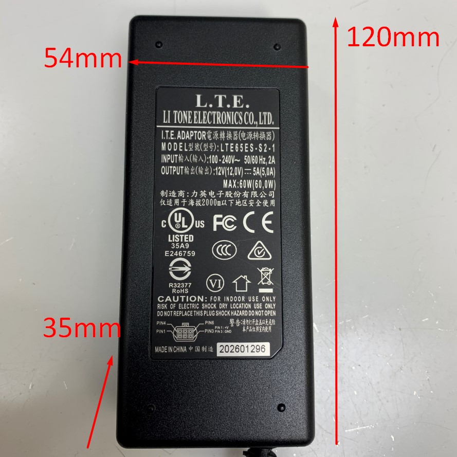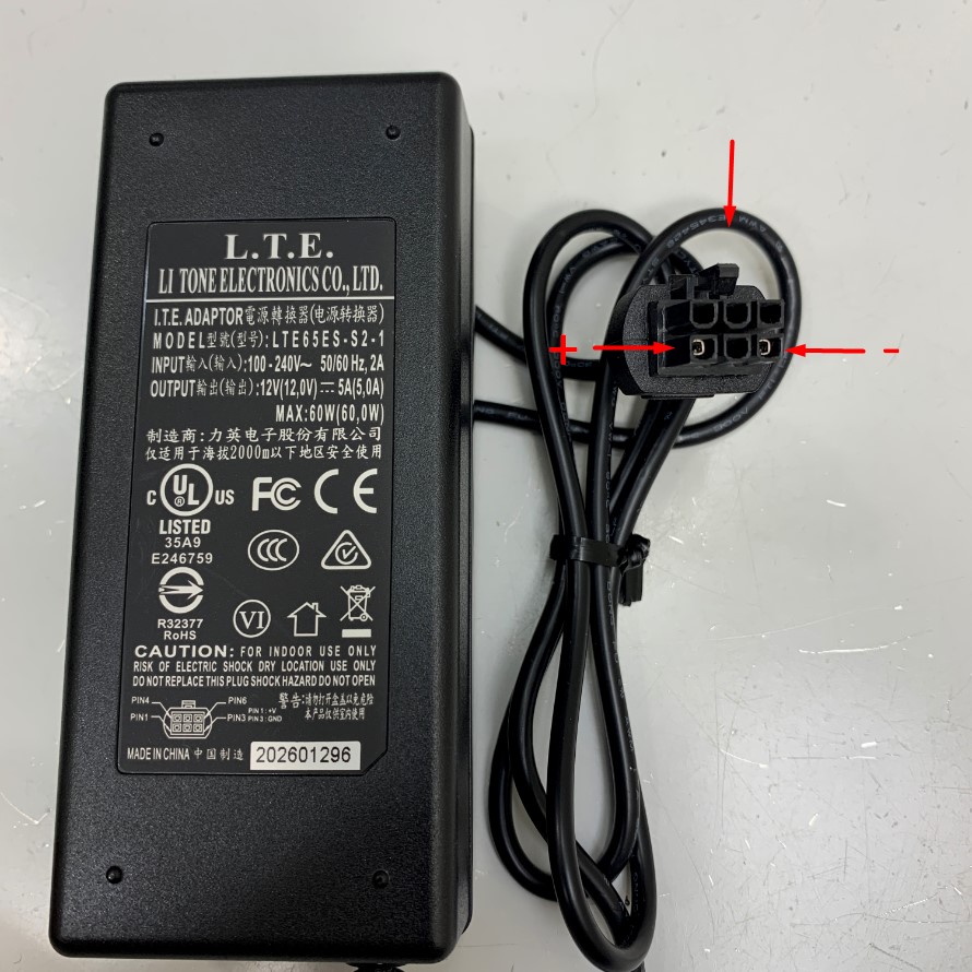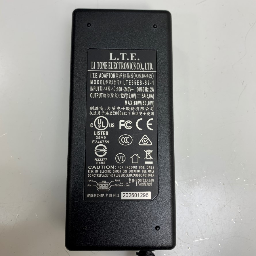 Adapter 12V 5A 60W L.T.E. LTE65ES-S2-1 Connector Tip Size Molex 6 Pin Pitch 4.2mm