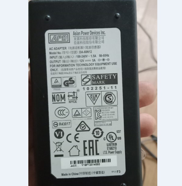 Adapter 12V 5A APD DA-60N12 Connector Size 5.0mm x 3.0mm For Camera Thiết Bị Hội Nghị Truyền Hình AVer EVC/SVC Series
