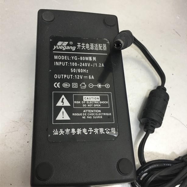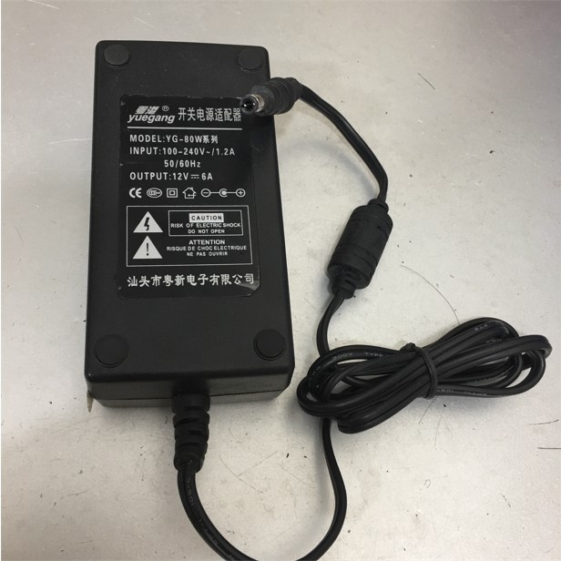 Adapter 12V 6A YUEGANG YG-80W Connector Size 5.5mm x 2.5mm