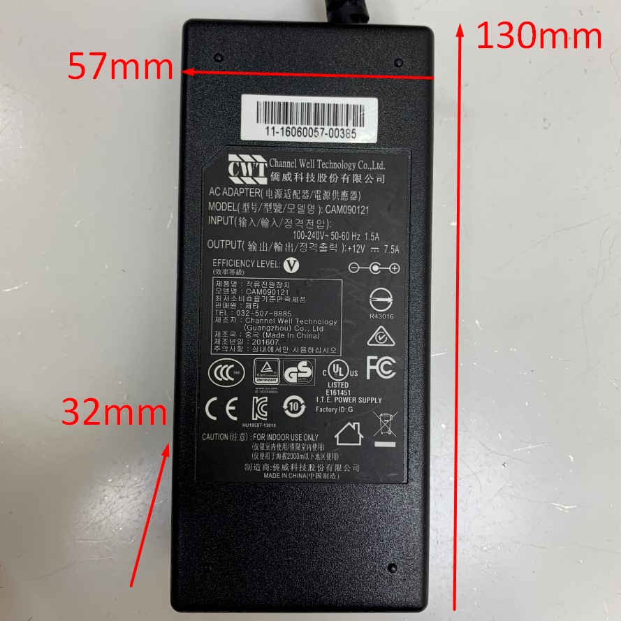 Adapter 12V 7.5A 90W CAM090121 CWT Channel Well Technology Connector Tip Size 5.5mm x 2.1mm
