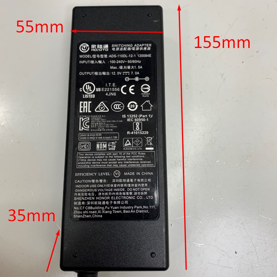 Adapter 12V 7A 84W HOIOTO ADS-110DL-12-1 Connector Tip Size 5.5mm x 2.5mm For QNAP TS-451, TS-431, TS-431+, TS-259 Pro+, TS-269 Pro