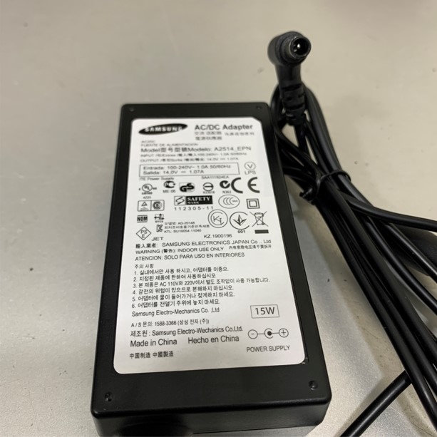 Adapter 14V 1.07A 15W SAMSUNG A2514_EPN For Monitor LED SAMSUNG S19D00NY Connector Size 6.5mm x 4.4mm