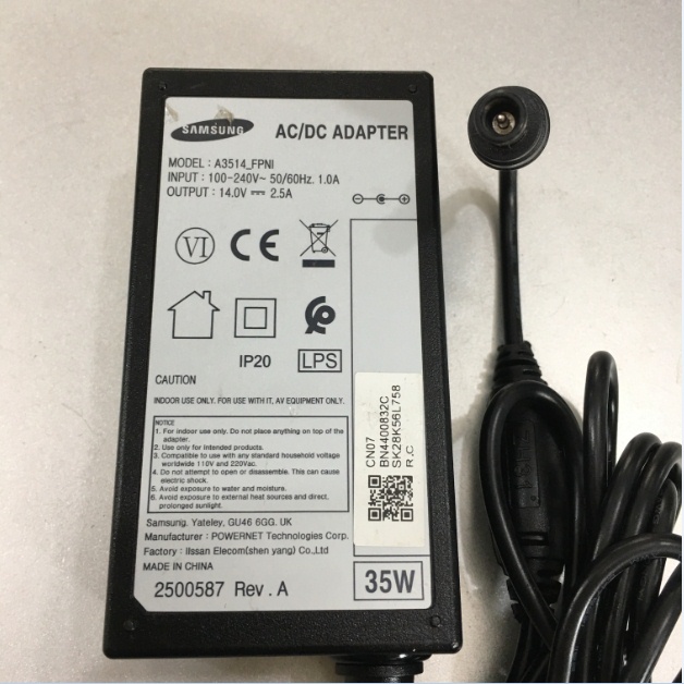 Adapter 14V 2.5A 35W SamSung A3514_FPN For For Monitor LED SAMSUNG Connector Size 6.5mm x 4.4mm