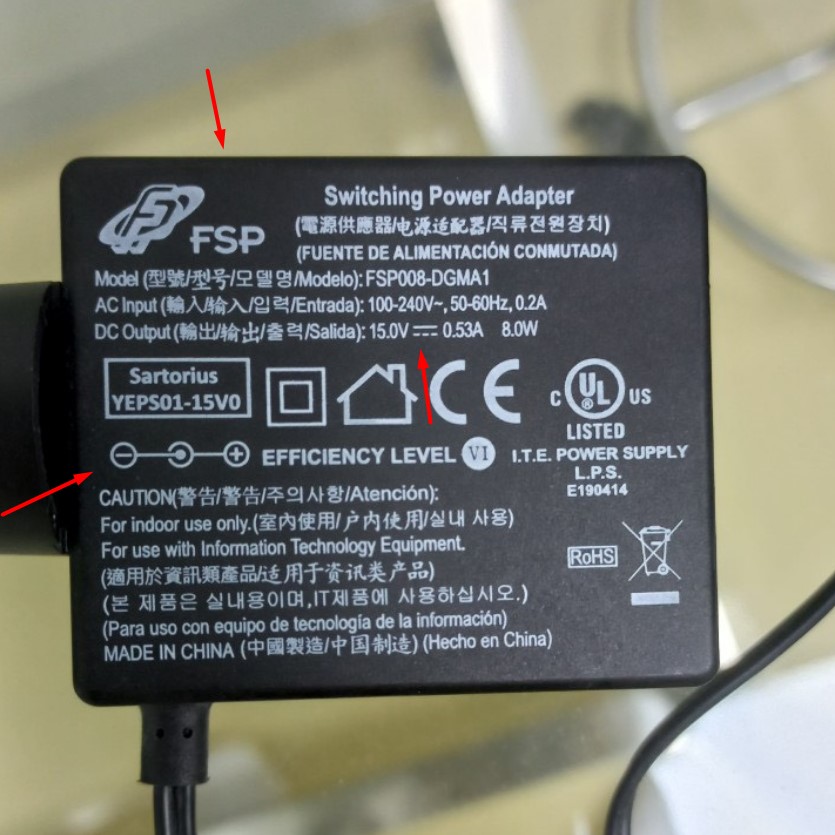 Adapter 15V 0.53A 8W FSP Group FSP008-DGMA1 DC + ---C--- Connector Size 5.5mm x 2.1mm For Cân Điện Tử Sartorius Japan