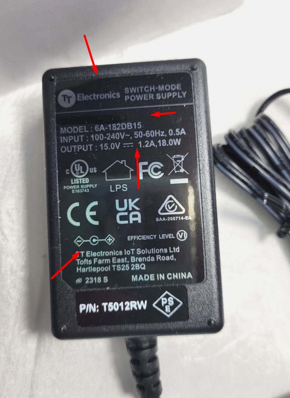 TT Electronics 15V 1.2A 18W Power Supply