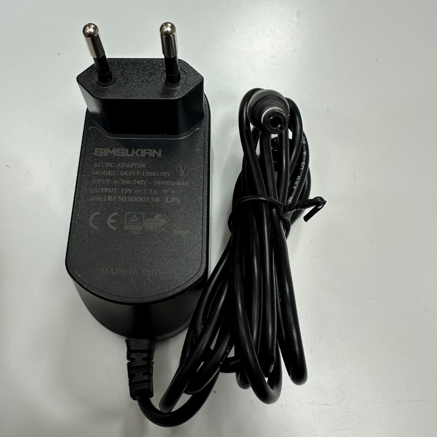 Adapter 15V 1.5A 22W Simsukian SK03T-1500150U EU Plug Connector Tip Size 5.5mm x 2.1mm For Power Supply Industrial
