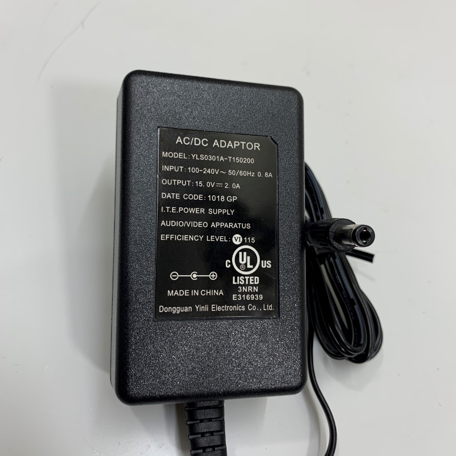 Adapter 15V 2A Dongguan YLS0301A-T150200 Connector Size 5.5mm x 2.1mm