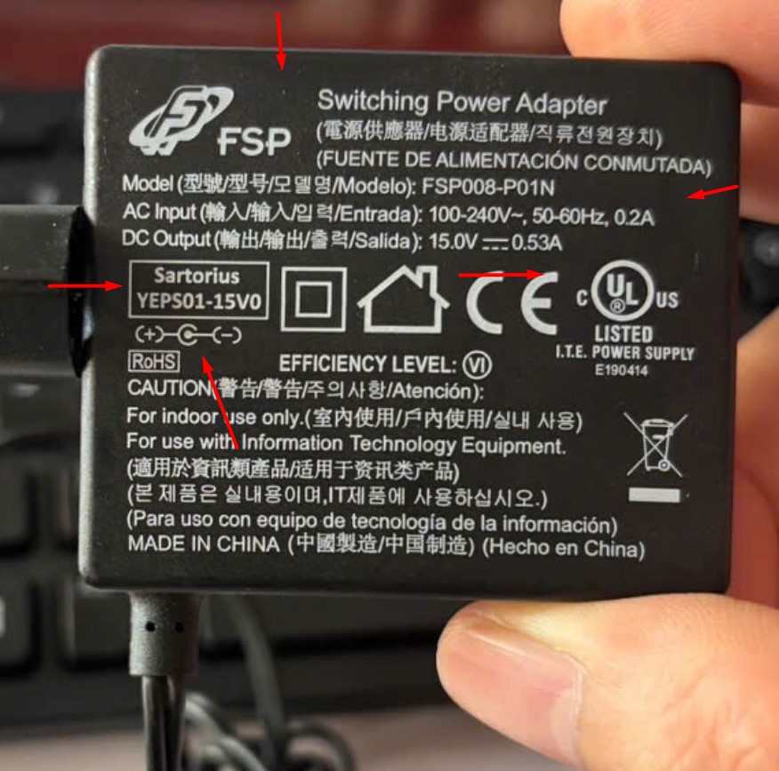 Cắn cứ vào sạc Sartorius YEPS-15V0 FSP008-P01N 15V 0.53A