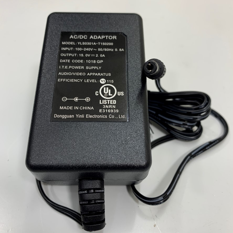 Yinli Electronics Power Supply 15V 2A DC + ---C--- Connector Size 5.5mm x 2.1mm