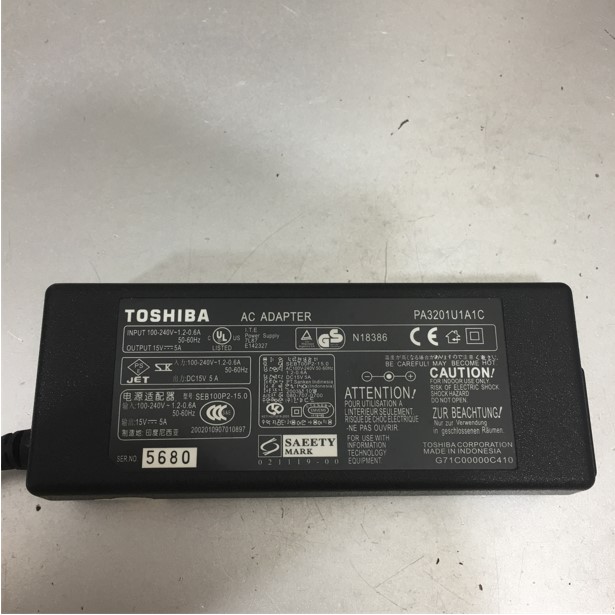 Adapter 15V 5A TOSHIBA PA2301U OEM Connector Size 6.5mm x 3.0mm