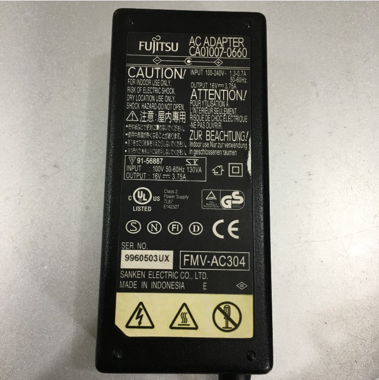 Adapter 16V 3.75A FUJITSU CA01007-0660 Connector Size 6.5mm x 4.4mm