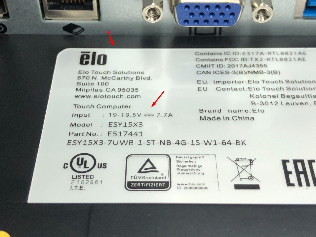 Adapter 19.5V 7.7A 150W Delta ADP-150VB B Connector Size 7.4mm x 5.0mm For Elo X-Series 15in AiO Touchscreen POS System i3-6100TE Win 10 ESY15X3