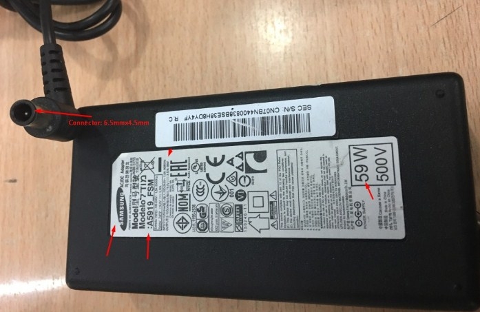 Nguồn điện cấp cho thiết bị: DC Connector Size 6.5mm x 4.4mm